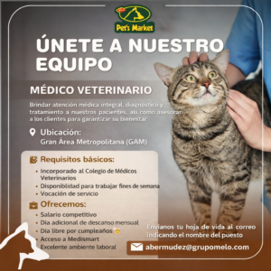 Envía tu hoja de vida al siguiente correo: info@petopia.cr Puesto: Médico Veterinario GAM Ofrecemos: Salario competitivo en un rango de ₡1.050.000 a ₡1.500.000, según experiencia Día adicional de descanso mensual Día libre por cumpleaños Acceso a Med... Estamos contratando médico veterinario CV: corporacionmafi@gmail.com Tel 83738668 Buscamos Médico Veterinario WhatsApp: 85814065 Correo: agroveteacosta@gmail.com 🐾 ¡Únete al equipo Veterinaria Nueva en Tambor, Alajuela! 🐾 ¿Buscas un proyecto nuevo donde puedas crecer y liderar? Estamos abriendo una veterinaria y farmacia nueva, y estamos buscando un M... Los interesados pueden enviar su currículum vitae al correo: 📩 recursoshumanos@vetedrtraube.com Envía tu CV a: zoovetclinica1@gmail.com o al WhatsApp 7069-9040 Clínica Veterinaria Pets Avenue 6222-1234 Veterinaria Oasis requiere contratar Médico Veterinario Regente Contacto: José Pereira Jiménez. Correo electrónico: jpgrecia061@gmail.com Teléfono: 8844 6664 Enviar curriculum a: fernandadelgado@petsmas.com Enviar solicitudes a: 4082-1095 – 6168-9920 Email: vetevbpacto@gmail.com Enviar CV, carta de interés y carta de recomendación a: maximiliano.bustamante@ucr.ac.cr Fecha de recepción: Del 15 al 31 de enero 2026 Información y contacto: Dra. Cindy Mora 6055-1796 Envía tu CV al WhatsApp 8686-1507 ¿Eres Médico Veterinario y aspiras a un crecimiento económico superior a ₡1.100.000 mensuales? En la Clínica Veterinaria Pets Avenue no solo reconocemos tu talento, sino que priorizamos tu biene...
